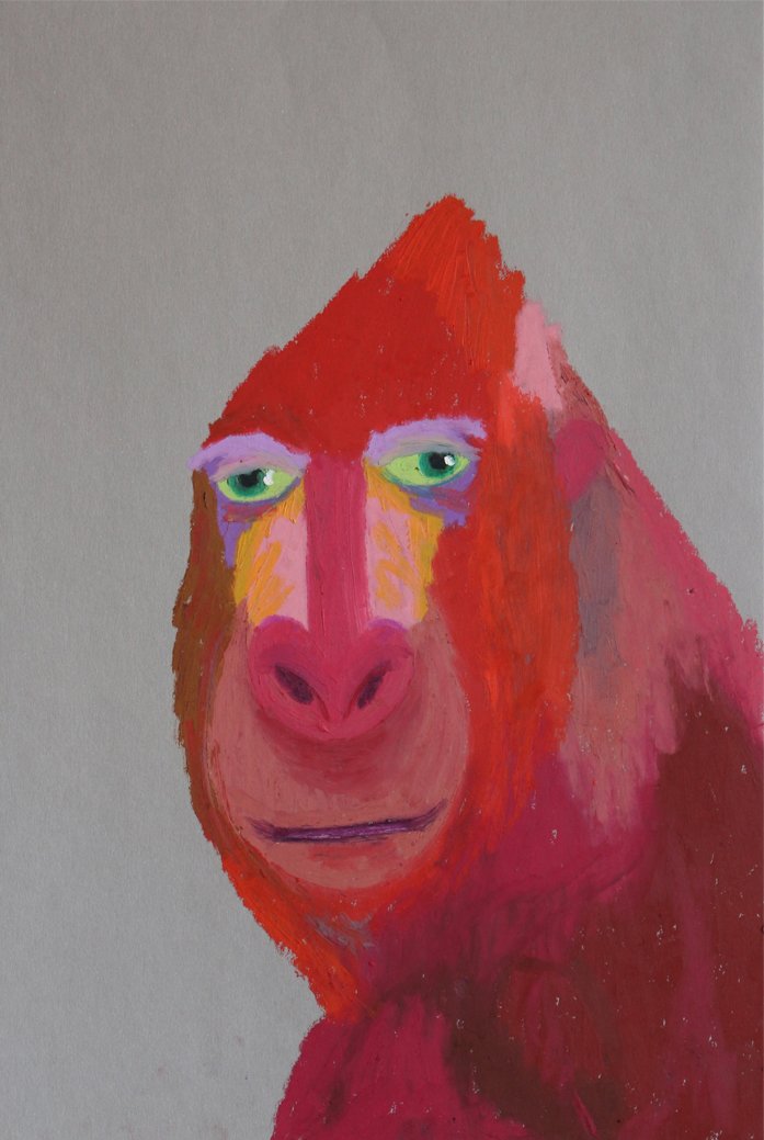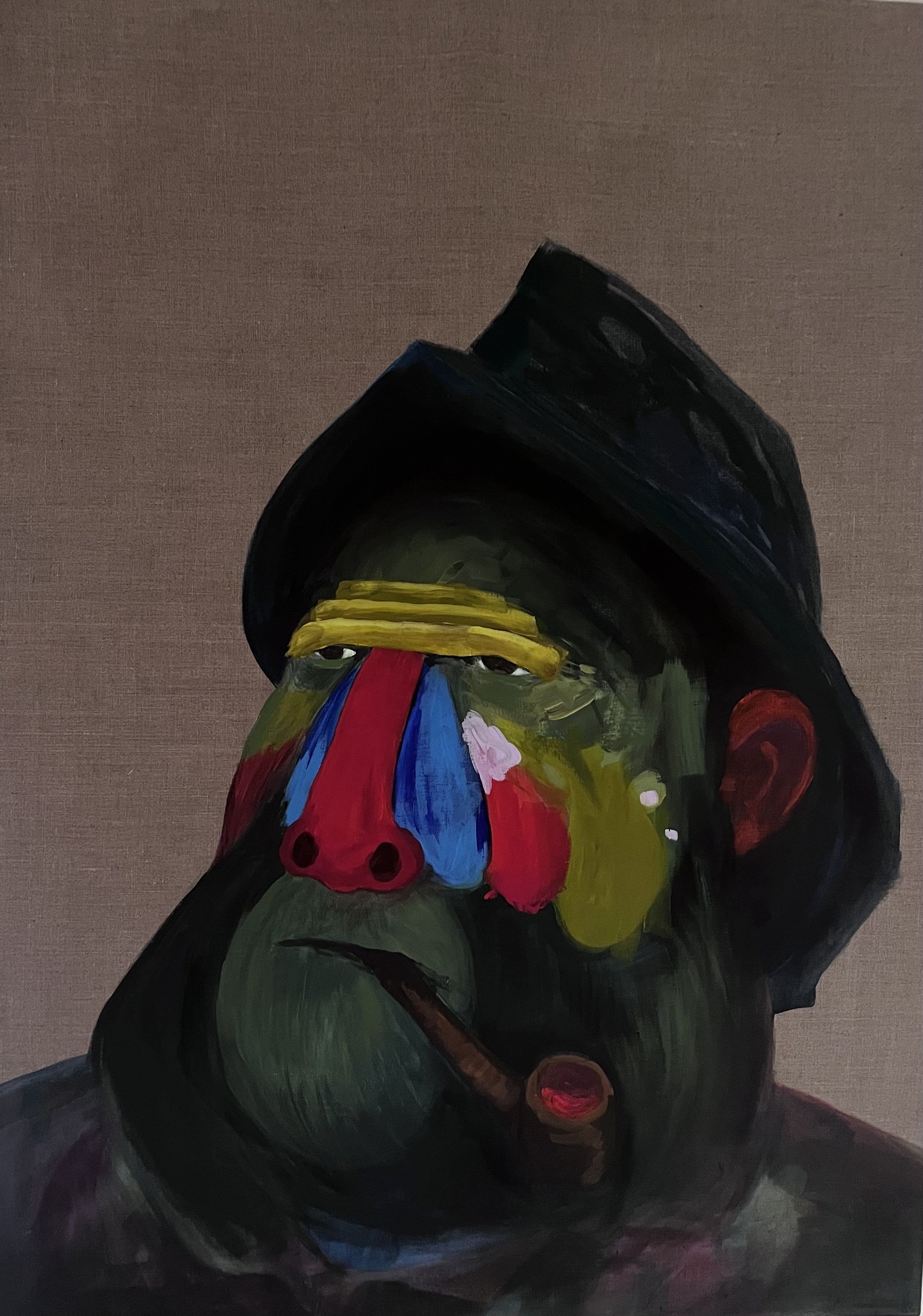 Maria Sandström transforms the figure of the ape into a prism through which the human condition is refracted—comic, tragic, and endlessly performative. Her paintings and glass sculptures stage identity as a theatre of masks, where sincerity dissolves into parody and authority collapses into absurdity. With incisive humour and an obsessive command of colour, Sandström exposes the fragile constructions that govern both private and public life, from the intimate contradictions of the self to the inflated rituals of corporate power.